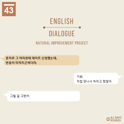 A: 문자로 그녀한테 데이트 신청했는데, 반응이 미적지근해.