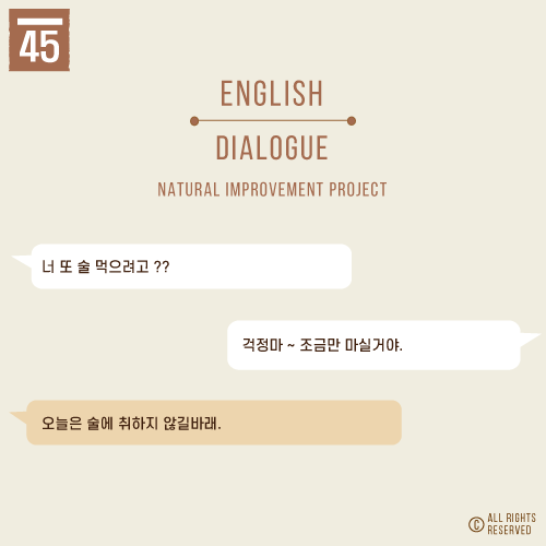 A: 오늘은 술에 취하지 않길 바라.