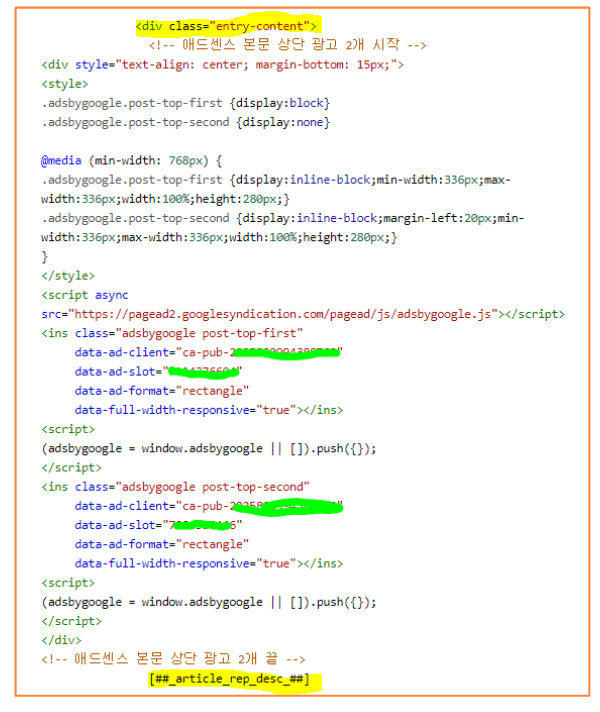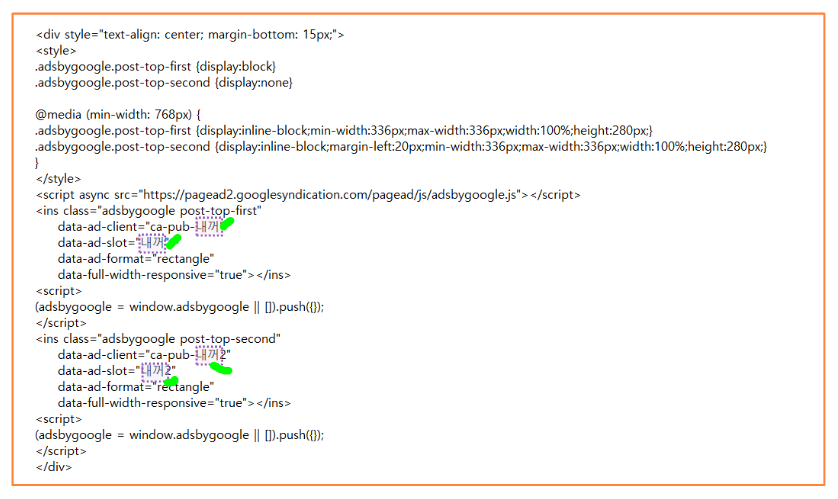 애드센스 상단광고 2개 적용방법