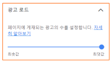 5) 광고 로드를 누르고 페이지에 게재되는 광고의 수를 생각해 설정합니다.