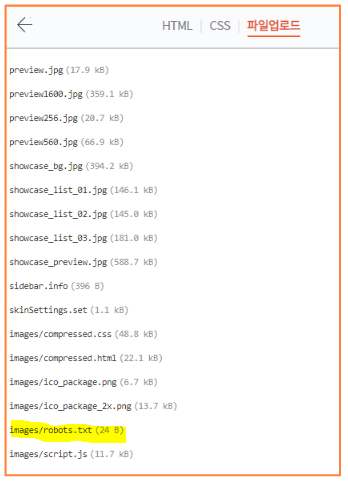 6) 아래와 같이 images/robots.txt 파일이 첨부되었으면 성공입니다.