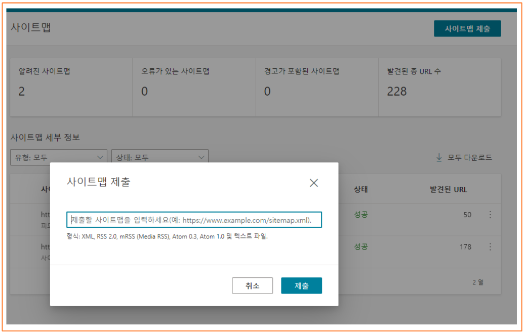 RSS 및 사이트맵 제출하기