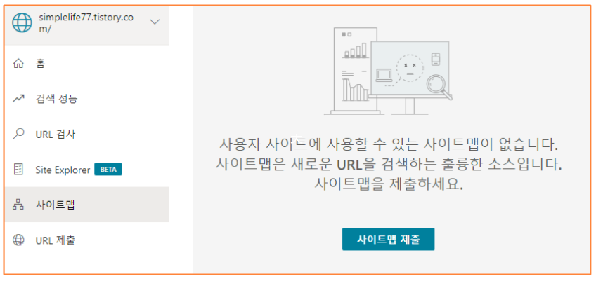 2) 본인의 티스토리 블로그 RSS & 사이트맵 URL을 입력하여 제출해주면 끝입니다.