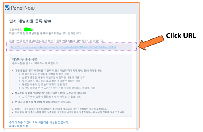 3) 등록한 이메일로 로그인해서 패널나우에서 온 메일을 클릭하여 보이는 URL 주소를 클릭합니다.