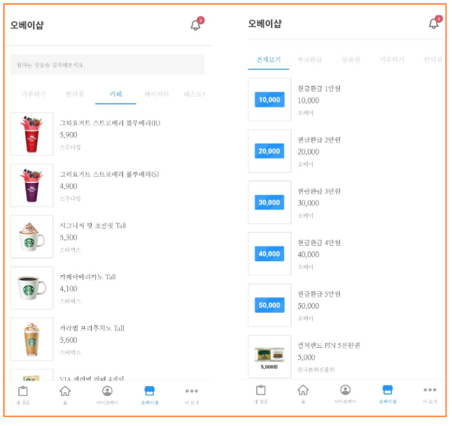 제일 중요한 건 현 급환급이죠. 여기서는 만원부터 현금 환급이 되고 다양한 곳에 사용할 수 있습니다. 물론 스타벅스도 있고 합니다. 이 정도면 돈 버는 어플이라고 할 수 있죠. 소소한 용돈벌이지만 말이죠.