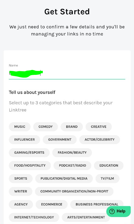 4) 본인이 사용하고 싶은 Name(이름)을 입력해준 후 자기를 나타낼 수 있는 카테고리를 골라줍니다.