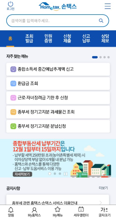 ▶ 손택스(모바일용) 앱을 클릭하여 접속을 해줍니다.