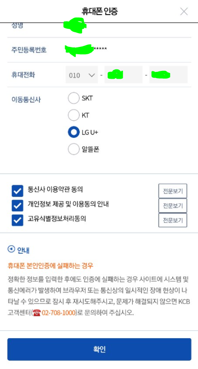 ▶등록을 누르면 휴대폰인증으로 넘어가는데 인증해줍니다.
