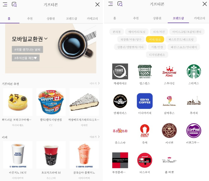 포인트 = 커피 및 편의점 구입 및 기프티콘 선물 가능.