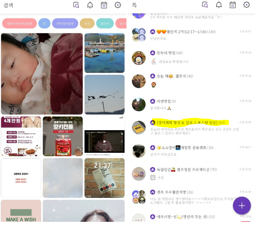 5) 캠프 앱에서는 새로운 느낌의 커뮤니티를 느낄 수 있습니다.
