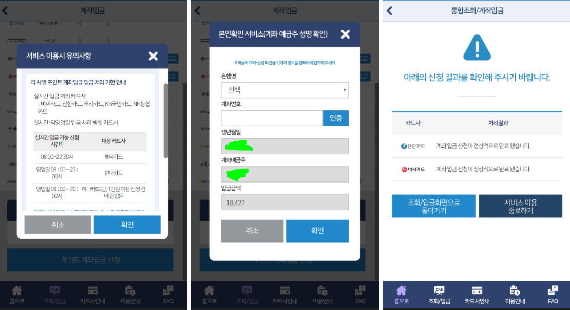 포인트 계좌입금 방법
