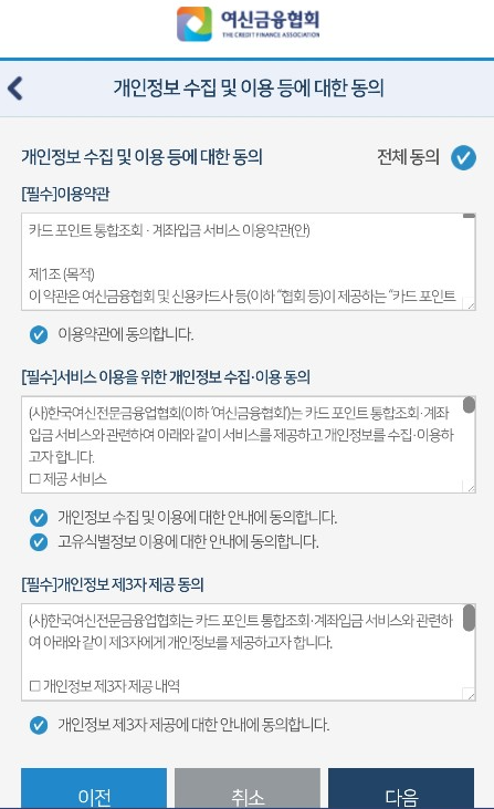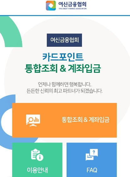 신용카드업, 할부금융업, 신기술금융업, 시설대여업을 영위하는 여신전문 금융회사를 회원으로 하는 사단법이라고 합니다. 1988년 설립 이후에 여신금융업 관련 정책 수립 지원, 연구 및 교육 등 관련해 발전을 노력을 한다고 합니다. 그래서 신기술을 도입해 신박한 카드 포인트 통합조회를 할 수 있는 서비스를 만들어냈겠죠.