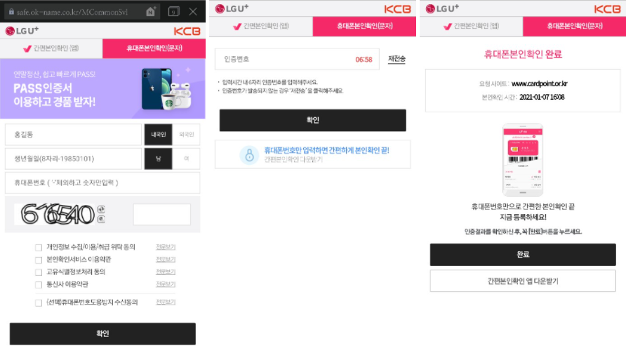 5) 저는 LG 유플러스로 휴대폰 본인 확인을 했습니다.