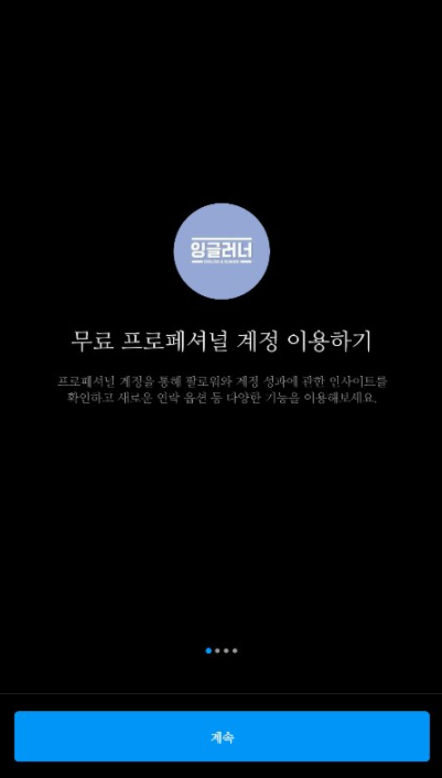 4) 프로페셔널 계정에 대한 설명을 해주니 '계속'을 눌러줍니다.