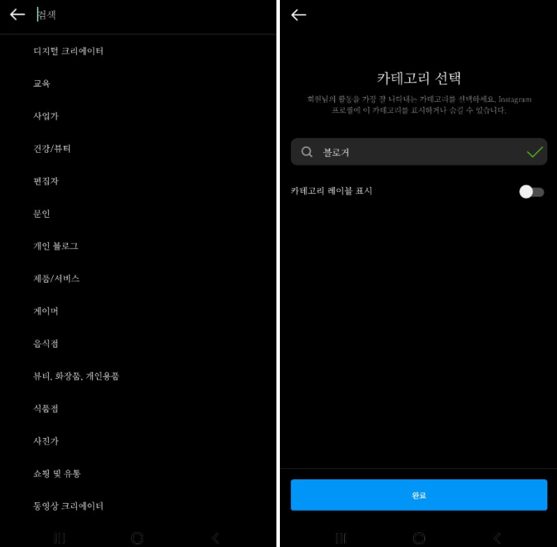 카테고리 레이블 표시: 이건 선택인데요 본인의 인스타그램 하단에 선택한 카테고리 레이블을 표시하는 겁니다. 이건 솔직히 크게 중요하지 않아 보입니다.