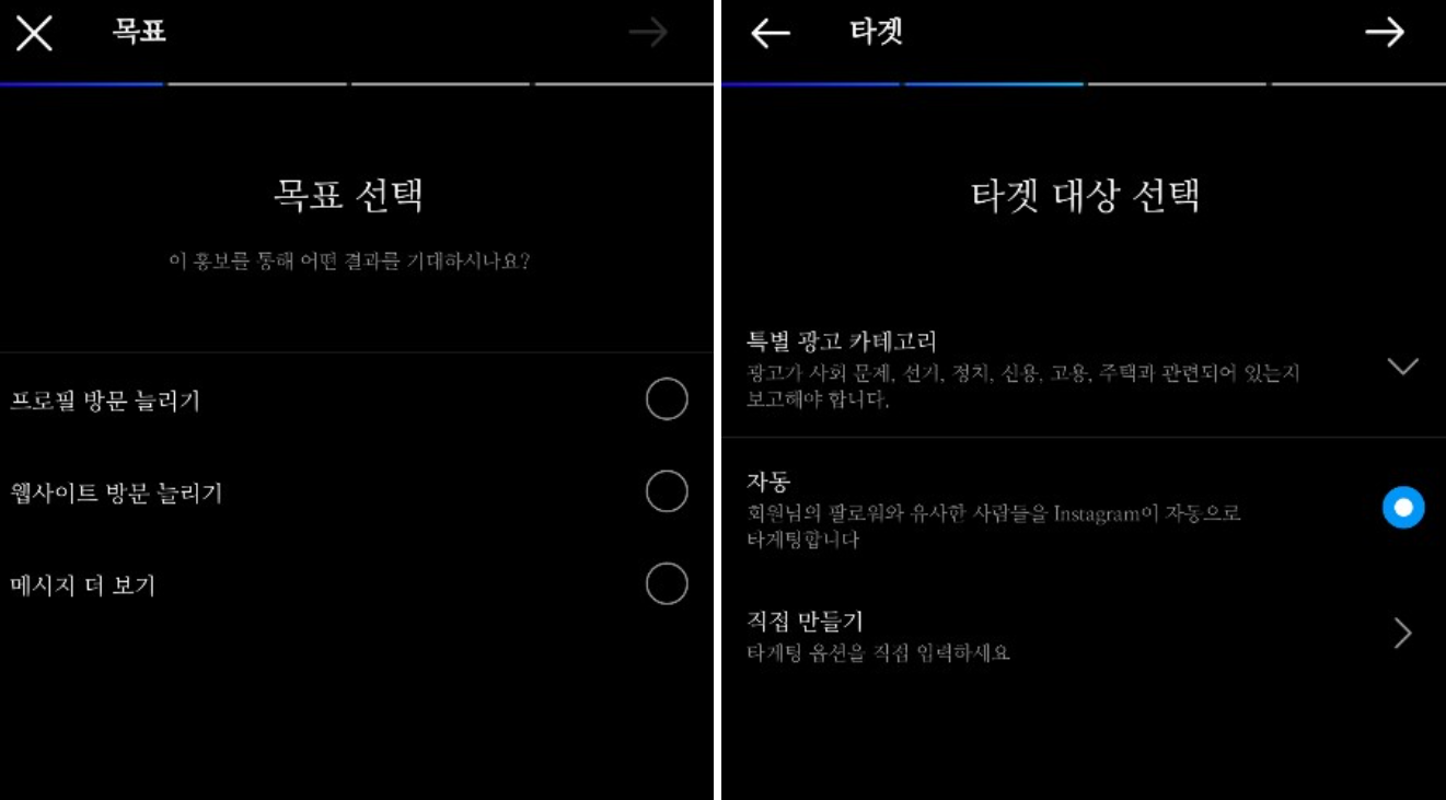 * 특별 광고 카테고리: 본인이 선택한 카테고리에 맞는 타깃을 설정합니다.
