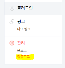 2) 왼쪽 사이드바 하단으로 스크롤을 내려서 '팀블로그'를 눌러줍니다.