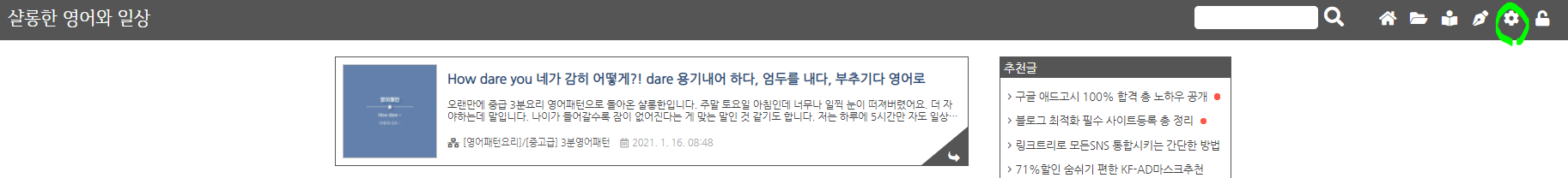 1) 본인의 블로그 주소 메인에 접속합니다.