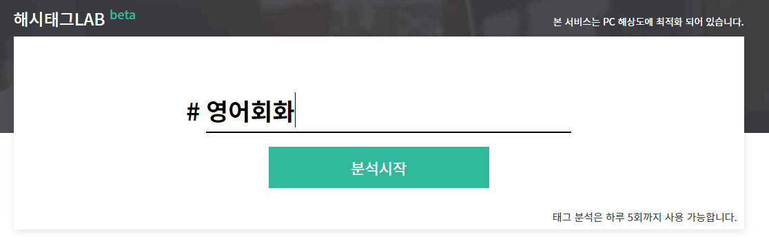 2) 분석할 hashtag를 공백에 입력하고 분석 시작을 누릅니다. 태그 분석은 하루 5회까지만 사용 가능하다는 걸 알고 계세요. 제가 여기서 해당 사이트에서 제공하는 장점을 정리해드릴게요.