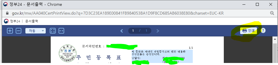 6) 문서 출력을 누르게 되면 인쇄할 수 있는 새 창이 팝업이 됩니다. 출력을 해줍니다.