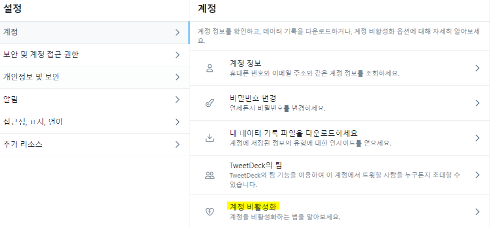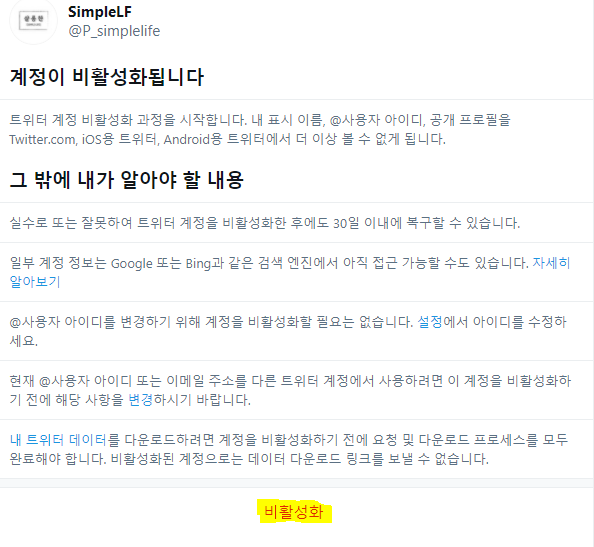 트위터 계정삭제 방법(PC버전)