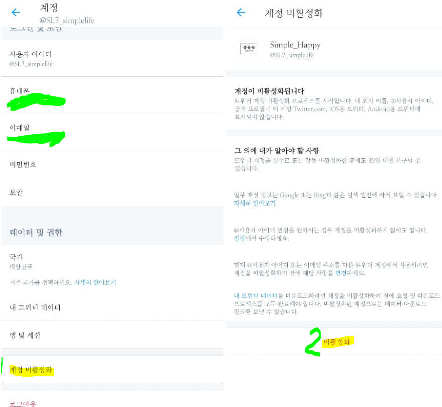 Twitter 계정탈퇴 방법(모바일 버전)