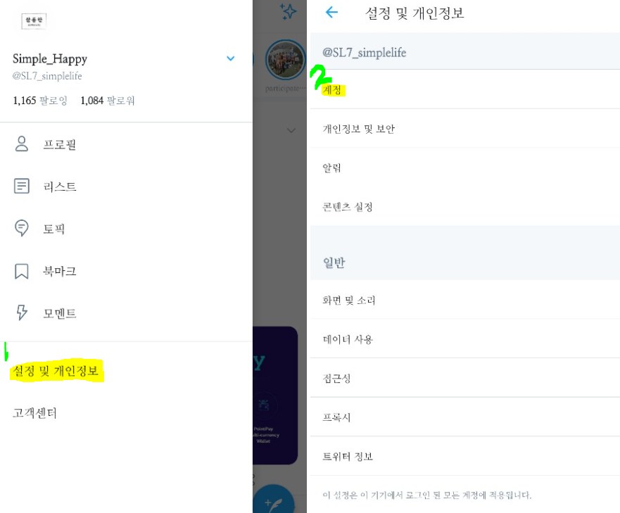 3) 설정 및 개인정보를 눌러줍니다.