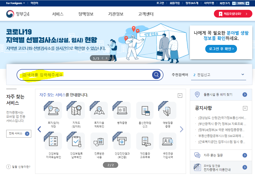 1) 정부 24 홈페이지를 접속하고 로그인해줍니다.