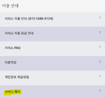 4) 서비스 해지를 눌러주세요.