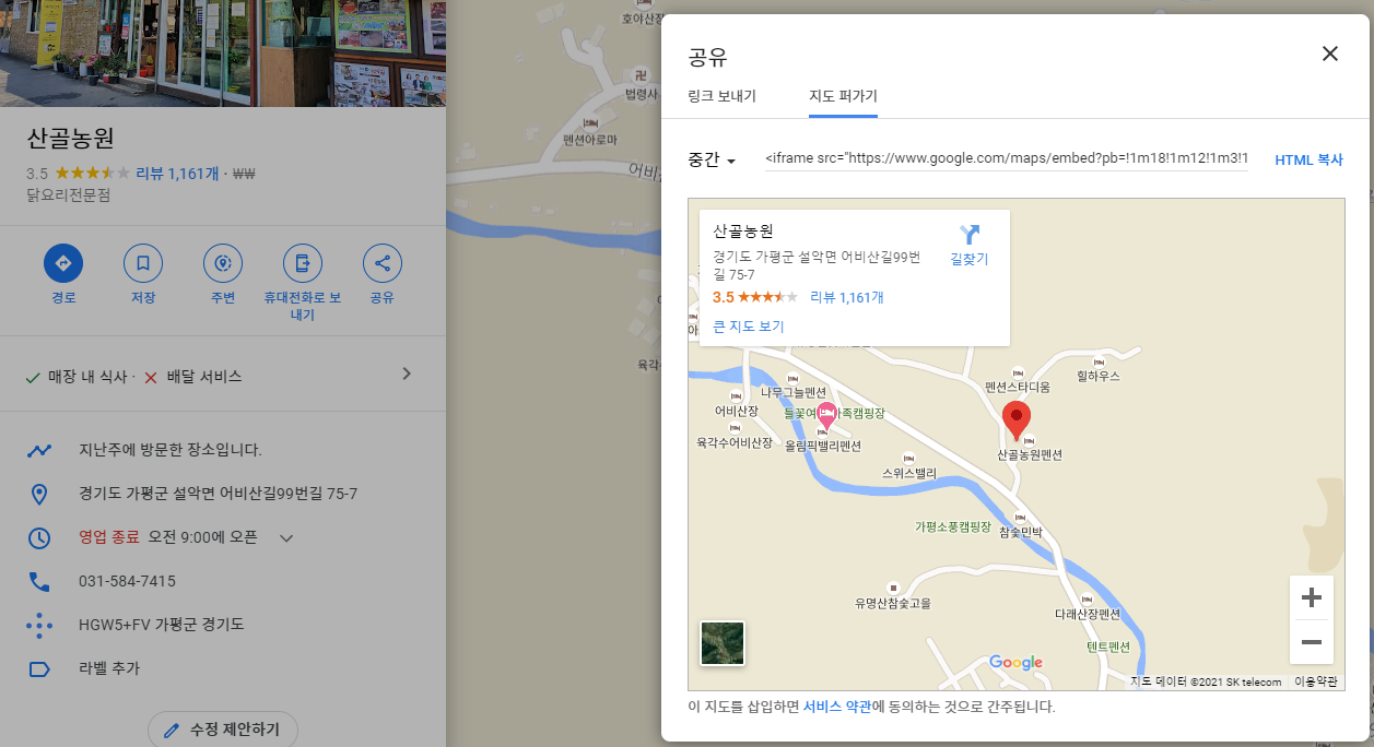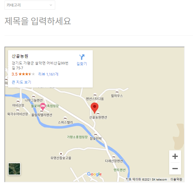 6) 다시 기본 모드로 돌아가면 아래와 같이 구글 지도가 첨부 완료되었습니다.