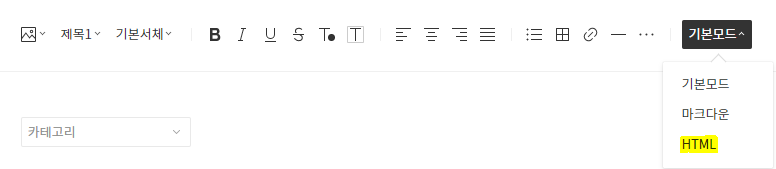 4) 글쓰기 -> HTML모드를 눌러주세요.