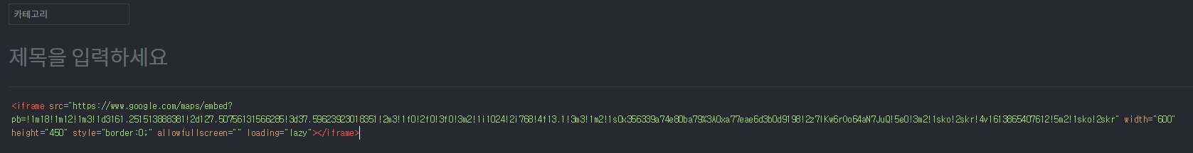 5) 복사했던 구글 지도 HTML을 붙여 넣어주세요.