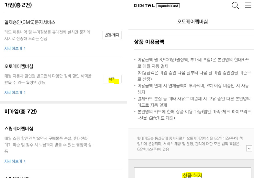 그리고 현대카드에서 소개해준 오토케어 멤버쉽을 가입했었죠. 그 당시에는 운전하는 날이 많았기 때문에 기름값이랑 세차 할인을 위해 가성비가 괜찮다고 생각했었어요. 하지만 차를 사용할 날이 많이 없게 되면서 쓸모가 없는 것 같아 저번 주에 해지했죠. 그렇다면 현대카드 오토케어 멤버십 혜택과 해지하는 방법에 대해서 알려드리겠습니다.