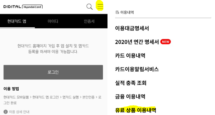 1) 현대카드 앱에 접속 후 로그인해줍니다.
