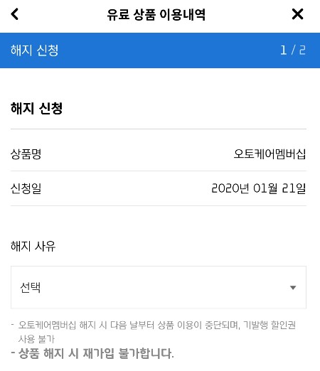 3) 오토케어 멤버십의 해지를 눌러주세요.