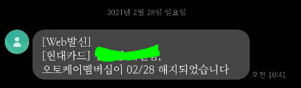 6) 해지 후 현대카드에서 WEB발신으로 해지완료 메세지가 오면 된 겁니다.