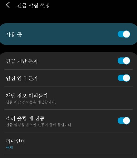 긴급재난 문자 차단/수신거부 설정