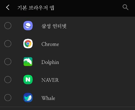 5) 기본 브라우저로 변경하고 싶은 앱을 클릭하여 설정하면 완료입니다.