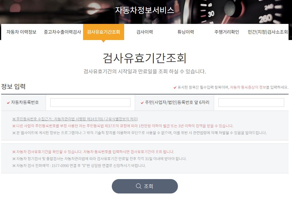2) 자동차 검사 유효기간 조회란에서 정보 입력을 해줍니다.