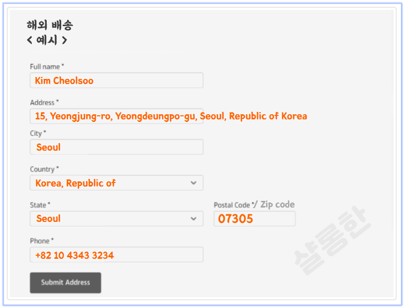 ▼ 아래와 같이 예시를 보시면서 직구 시 참고해서 작성하시면 될 것 같아요.